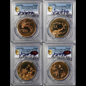 第290475号:1980年上币福禄寿喜-梅兰竹菊精制紫铜章 PCGS评级(部分11M红标)