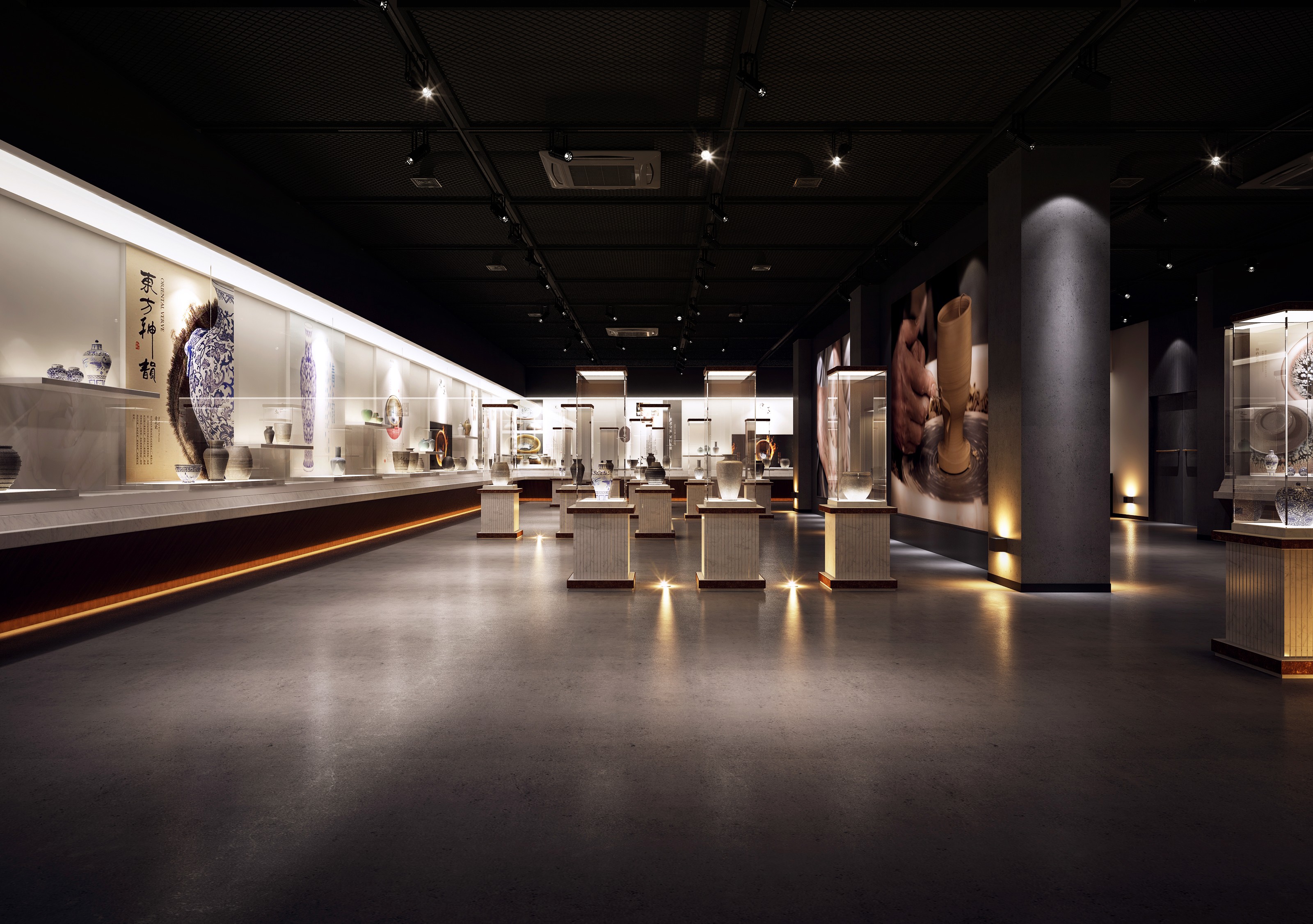 博物馆展厅设计方案效果图书法摄影陶瓷旗袍历史主题博物馆非模型