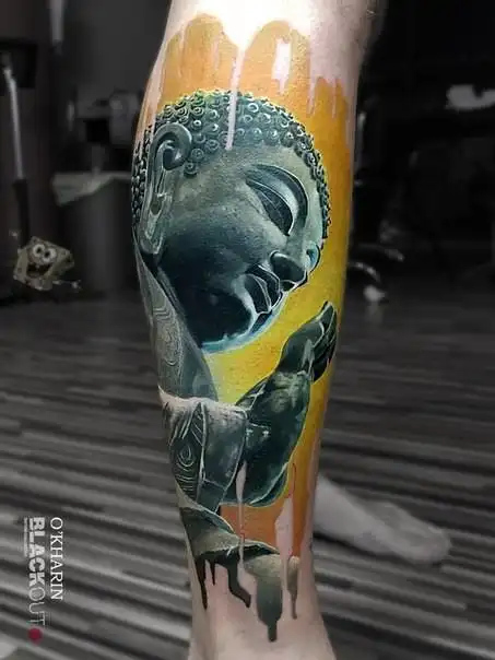 佛头莲花包小腿_纹身图案手稿图片_tattoo-m的纹身作品集