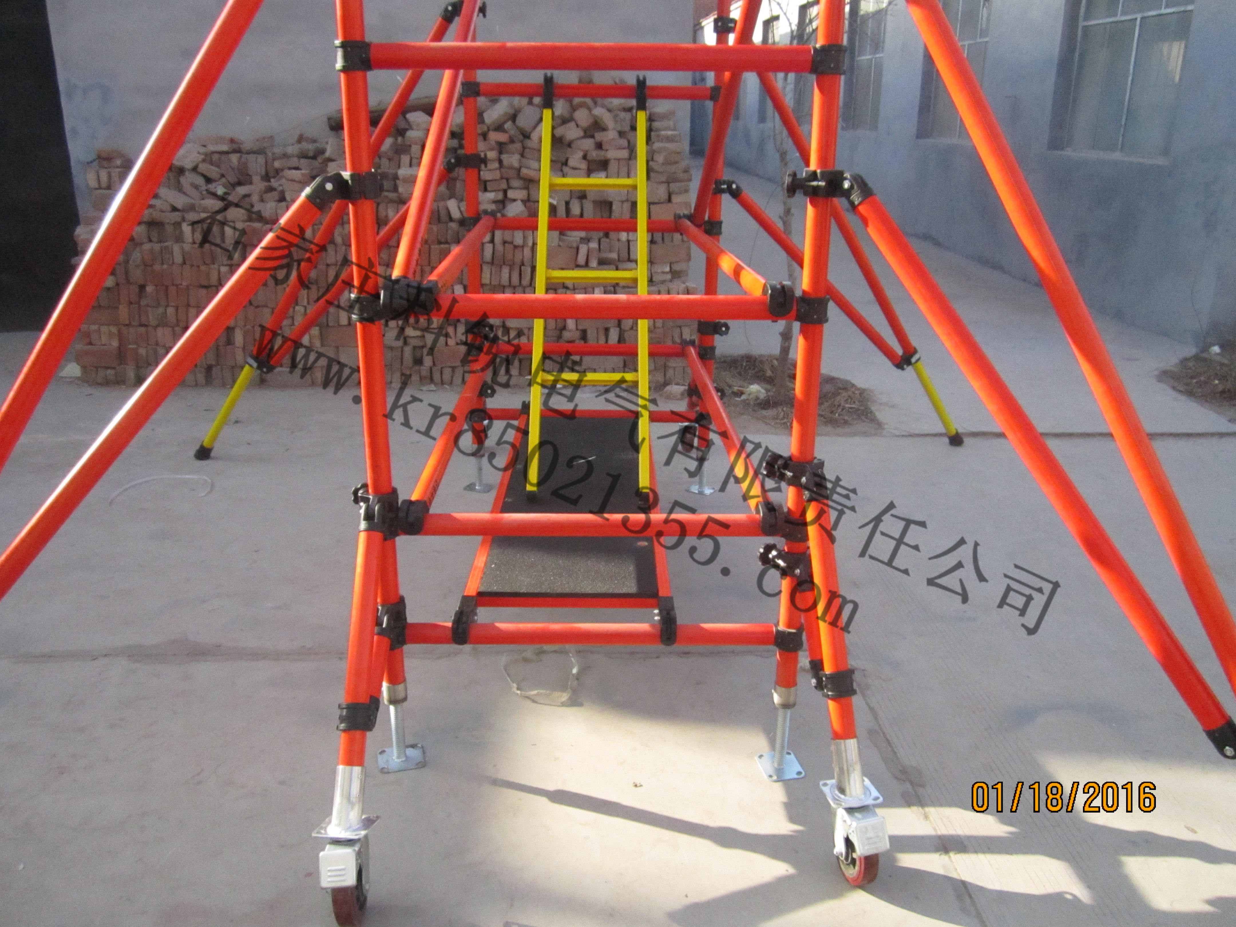 脚手架采用自锁式连接盘和销子,销子插接后靠自重即可锁紧,且它的横向
