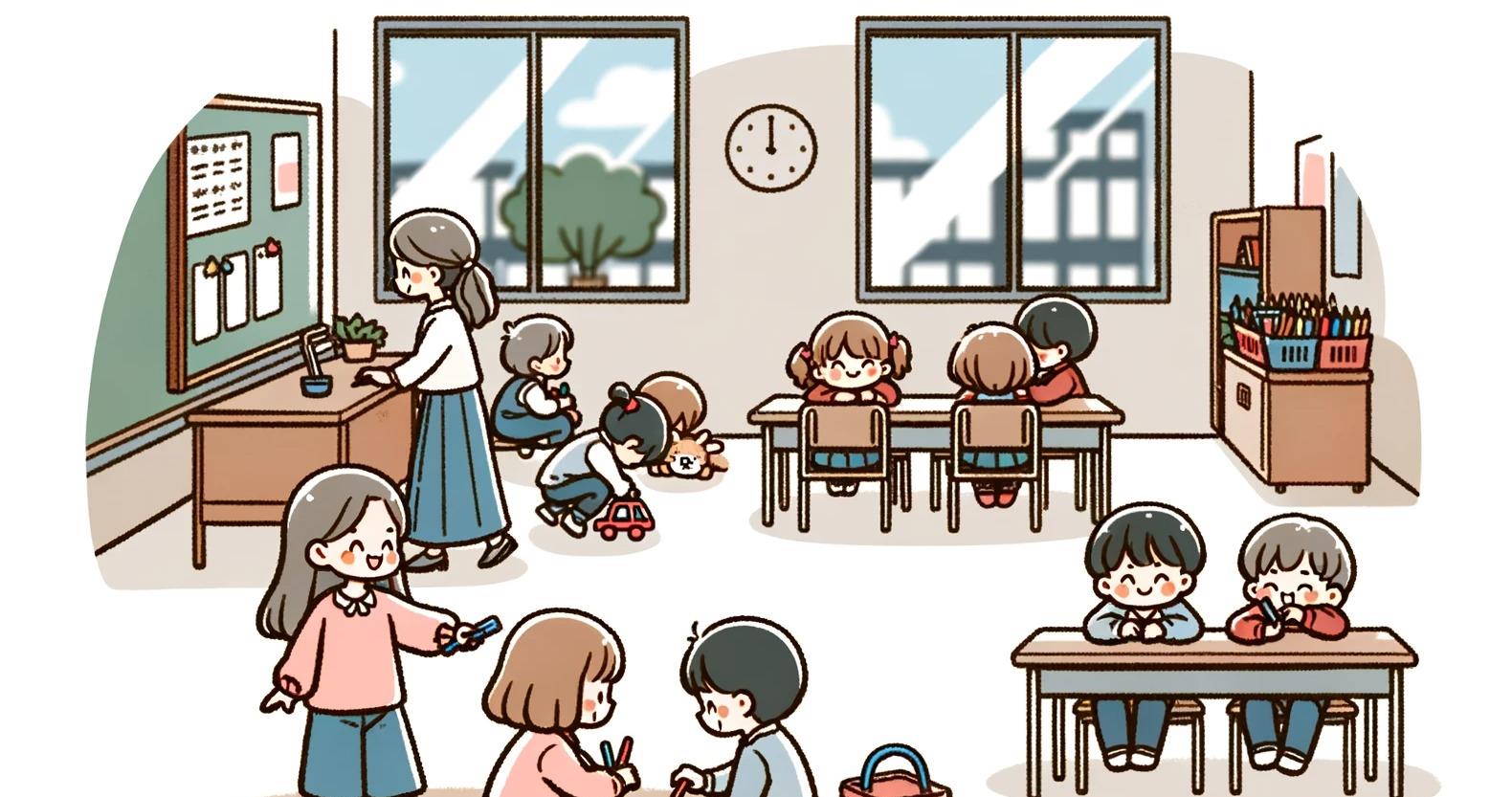 卡通小学生黑板课桌热闹的教室插画2450964png图片免抠素材