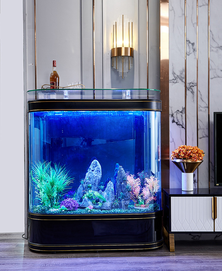 新款轻奢简约现代鱼缸水族箱 客厅家用玻璃欧式金鱼缸生态免换水大型1