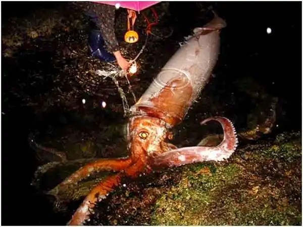 巨型乌贼现身日本海域,体型庞大,体长可达8米,犹如外星怪物