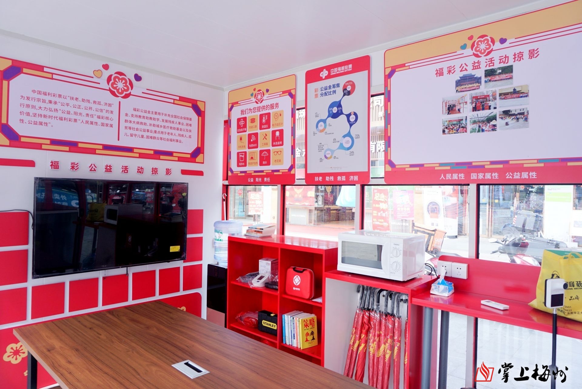 市福彩中心在万达广场设立了首个福彩爱心公益驿站,驿站内公益展示墙