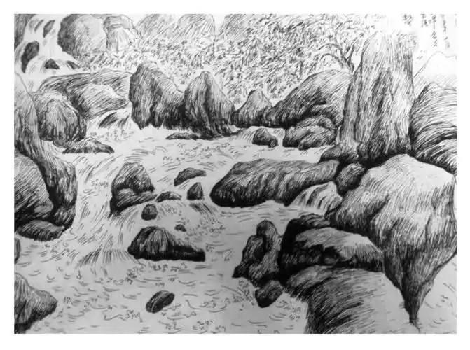 素描山水河流
