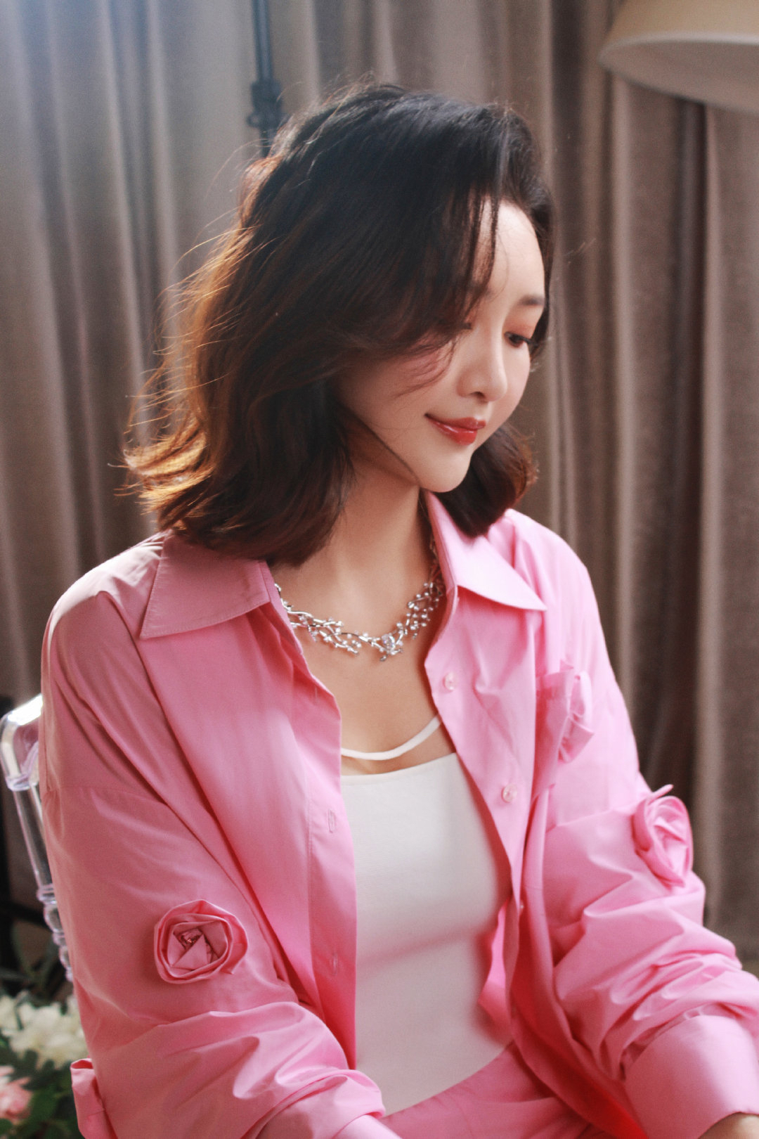 王鸥穿粉色上衣像上世纪少奶奶,红唇黑发气质好_风格_造型_穿着