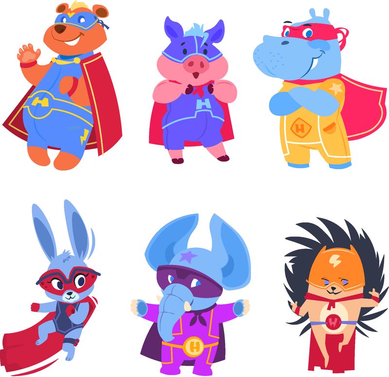 超级英雄动物-婴儿超级英雄人物集-动物保护者,救世主,刺猬,大象和熊