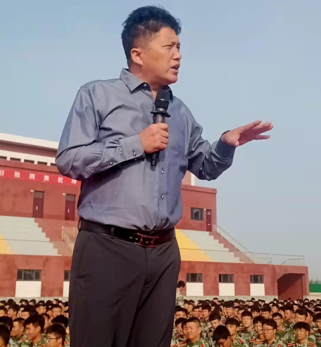 2011年,周虎振同样站在一辆皮卡上,"检阅"军训新生方阵.