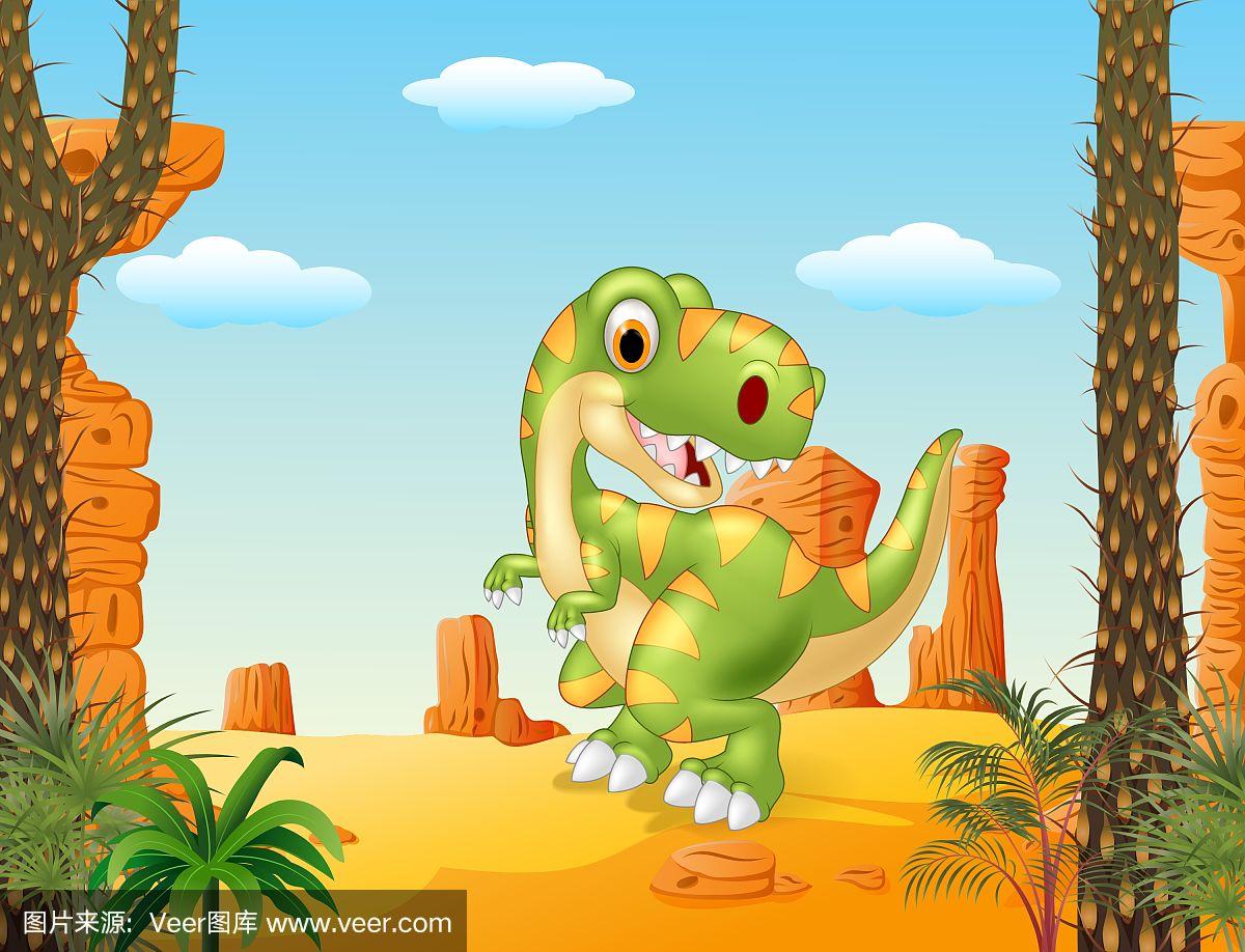 卡通搞笑dinosaurwith沙漠背景