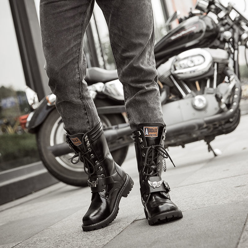 朴木隐长筒靴男马丁靴高帮英伦风皮马靴子高筒机车靴冬季加绒士皮靴