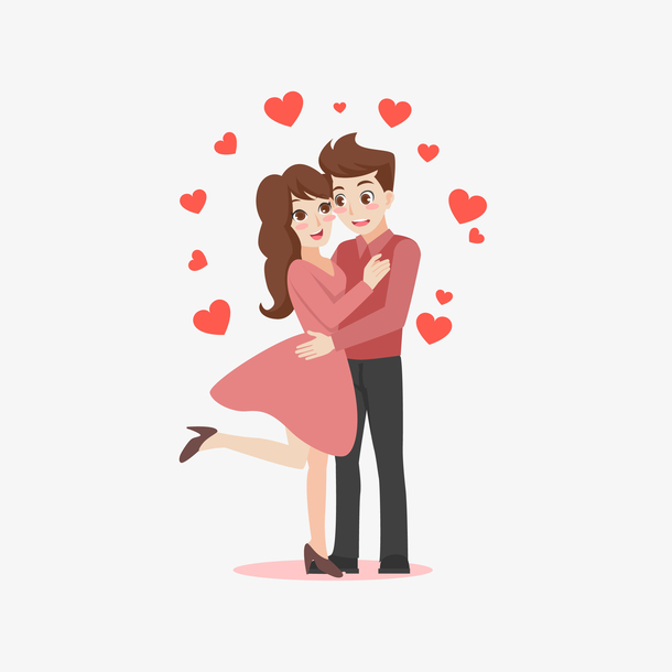 情侣浪漫对视表白甜蜜氛围七夕情人节扁平卡通人物插画粉红爱心礼物