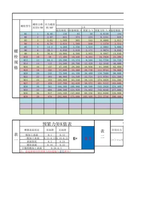 常用螺栓屈服强度预紧力计算程序及对照表