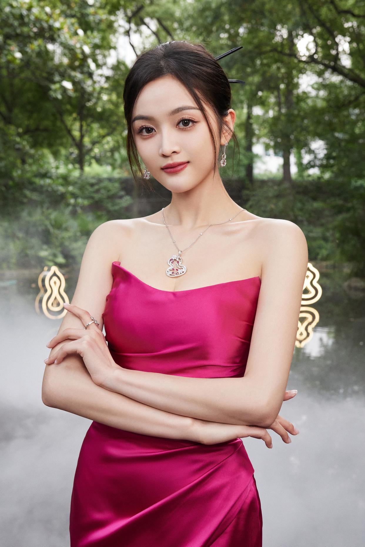 吴宣仪穿高端玫红色抹胸礼服裙拍摄唯美写真!