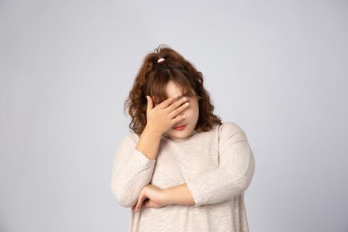 感到沮丧自卑的亚洲肥胖女生