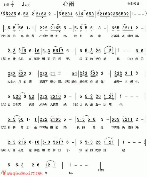 心雨_杨钰莹 毛宁_歌谱歌词_曲谱资料