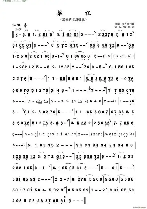 梁祝(高音萨克斯演奏) 歌谱简谱网