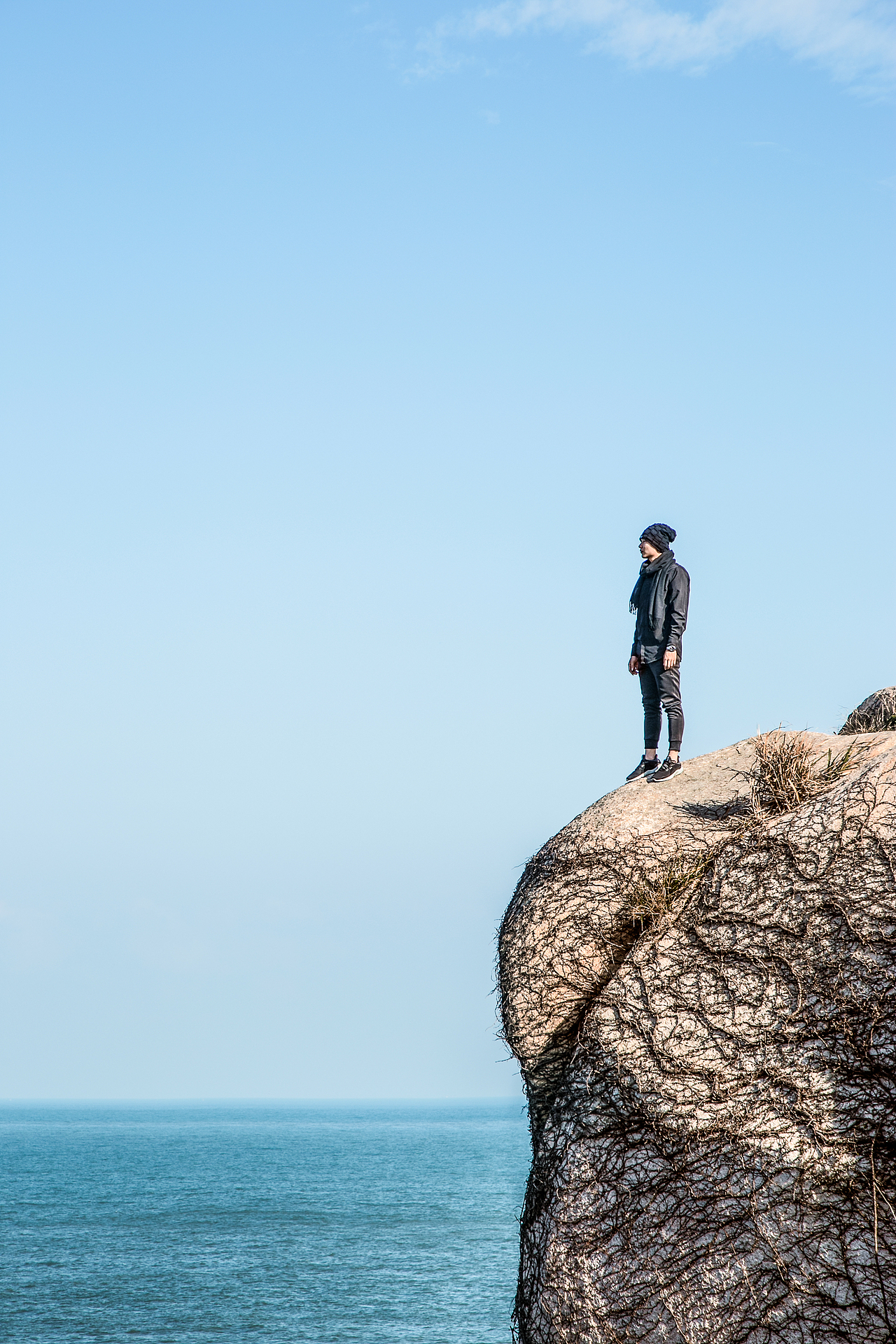 他站在最高点眺望大海,努力的在寻找他下一个人生目标.