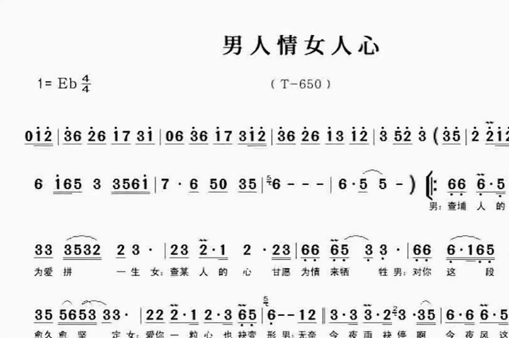 男人情女人心 闽南语 歌谱 简谱