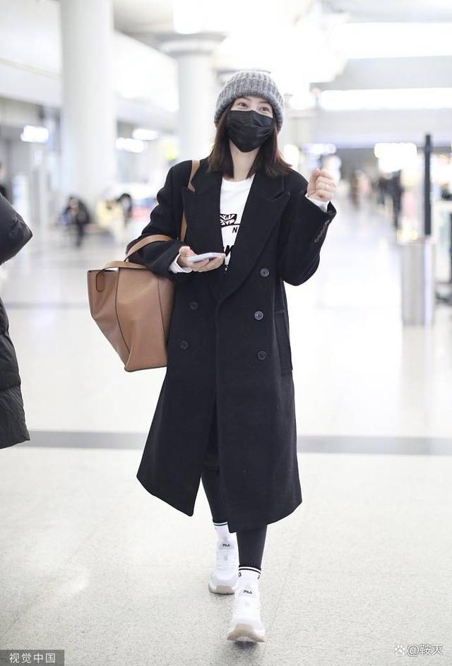 高圆圆机场穿搭一身黑色搭配简约大方又不失细节之美