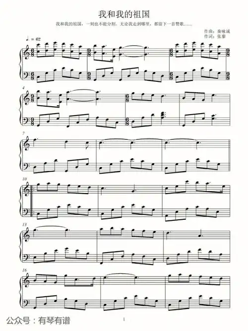 我和我的祖国简谱共1页