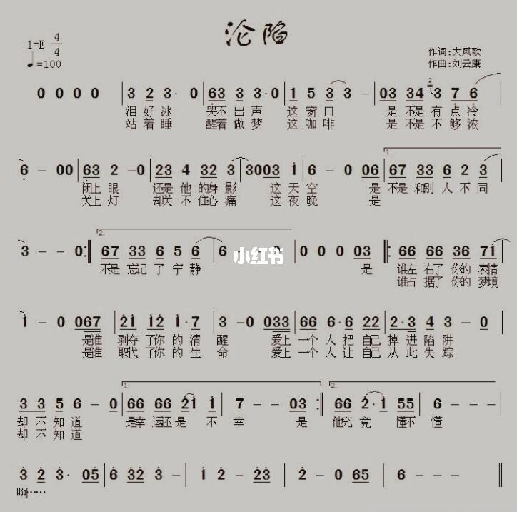 沦陷(刘云康曲 大风歌词)简谱-通俗曲谱-爱曲谱网