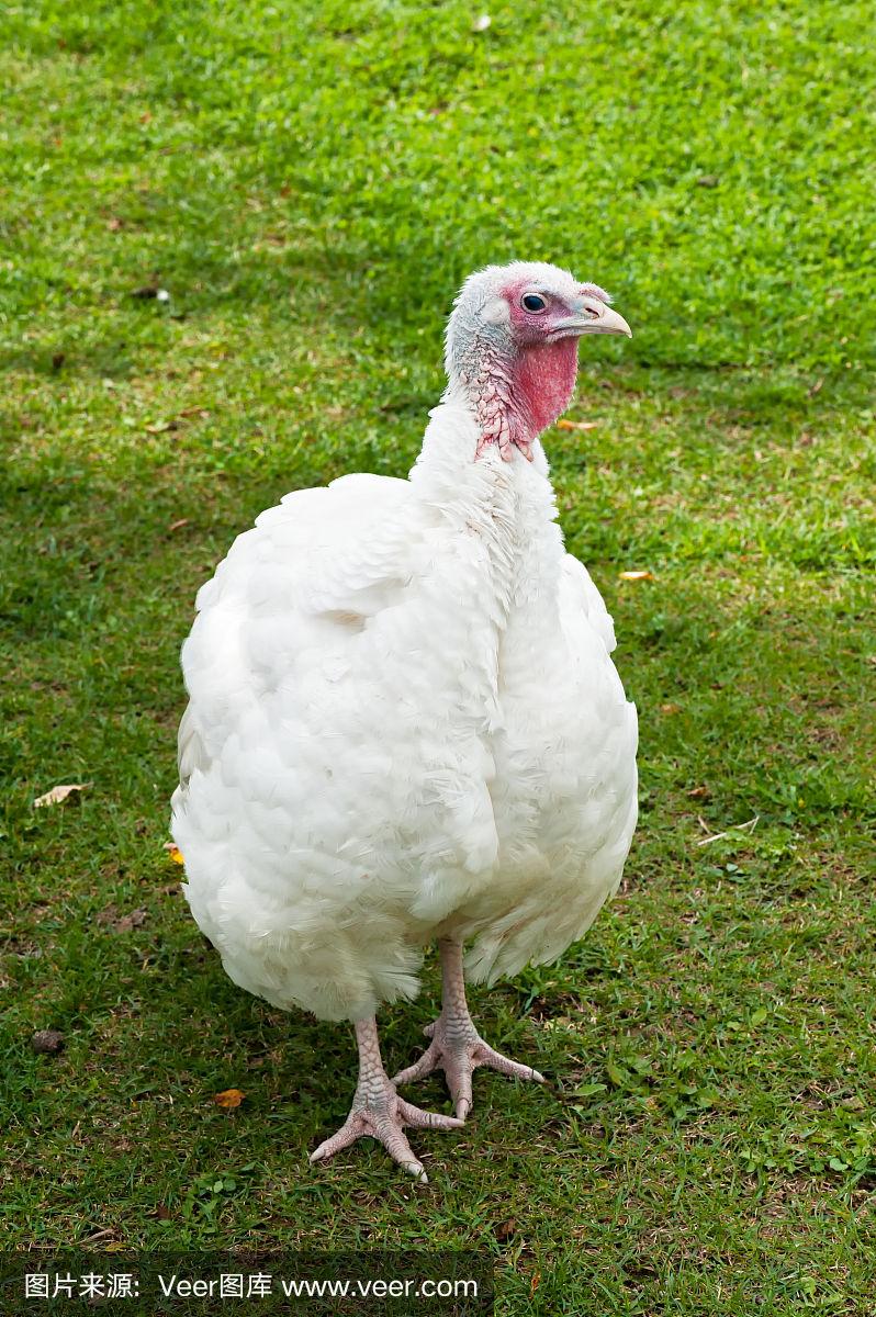 绿色草坪上的白色火鸡