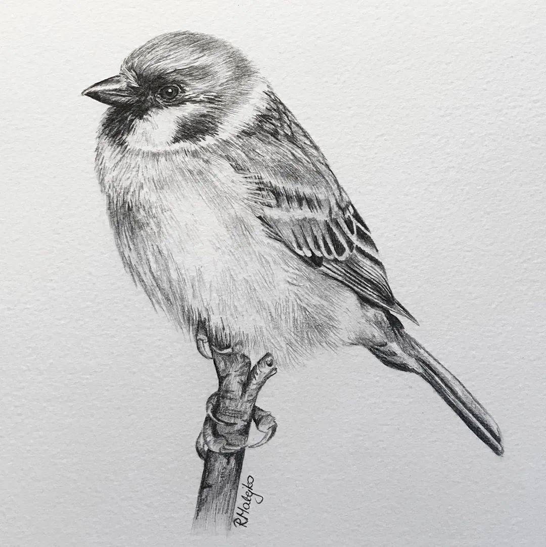 8小时画了一只猎鹰活灵活现的各种鸟类素描果断收藏
