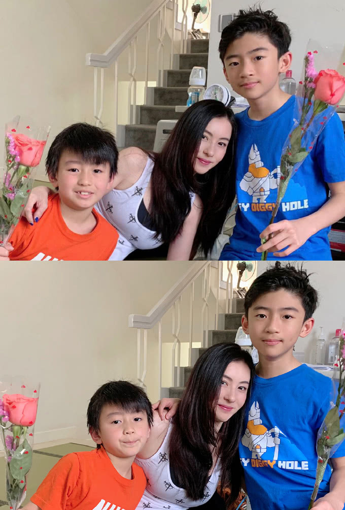 张柏芝晒儿子最新照片帅气大儿子个子超过妈二儿子颜值不如爹