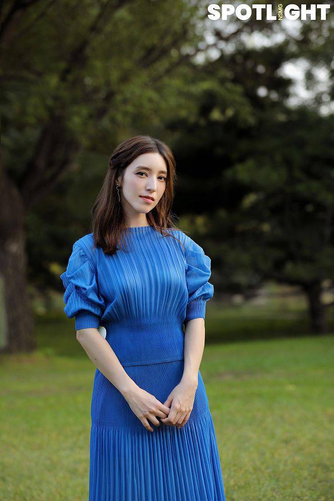 梁心颐蓝色连衣裙温柔优雅绿野林间恣意洒脱开唱