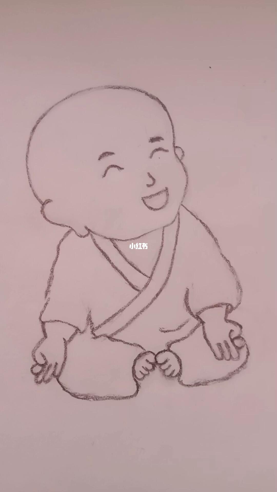 手绘简笔画小和尚