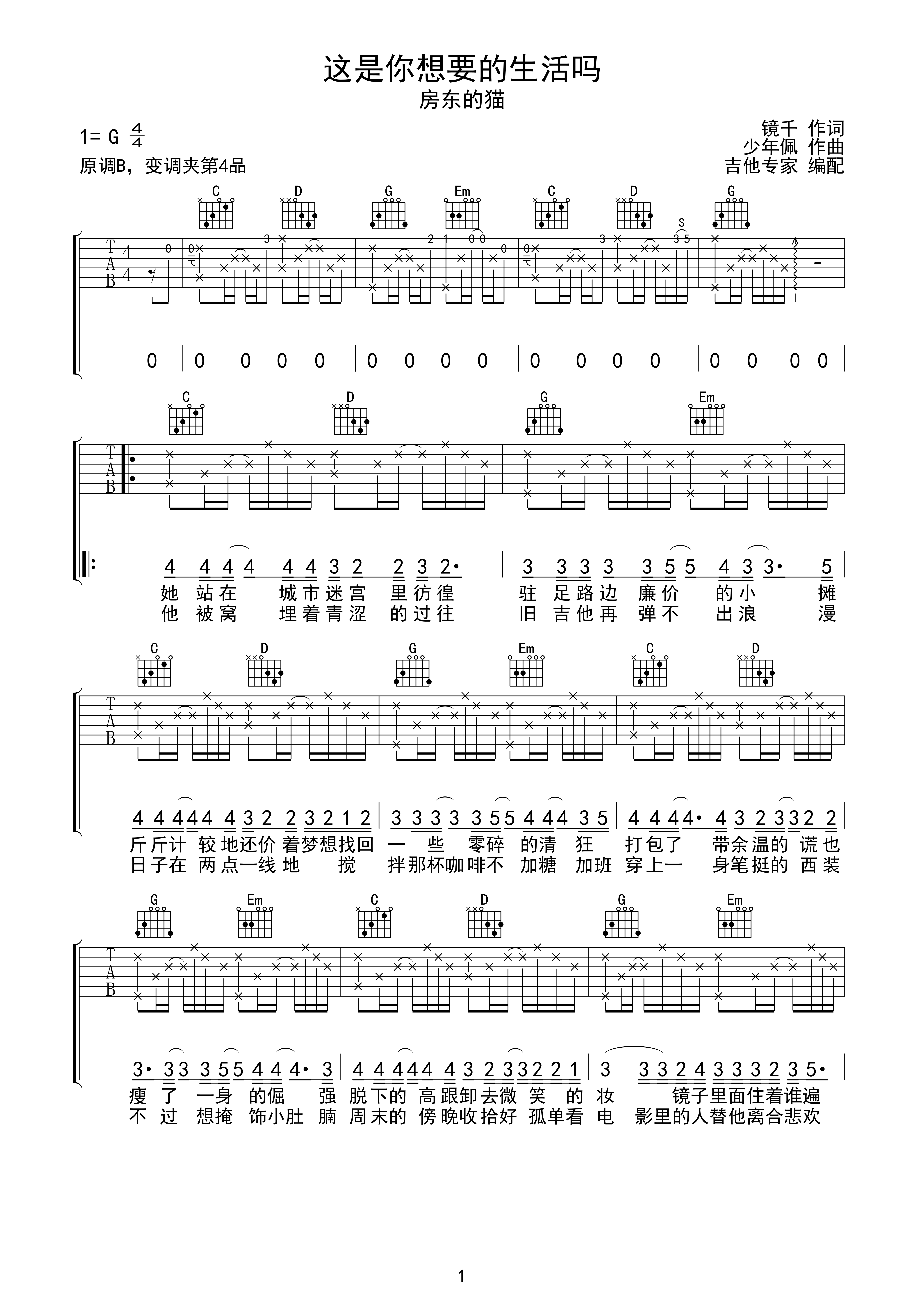 每日有谱:房东的猫《这是你想要的生活吗》吉他谱 吉他吧