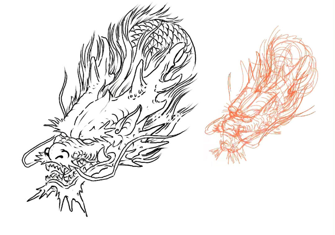 【国画教程】白描龙谱,栩栩如生!_龙头