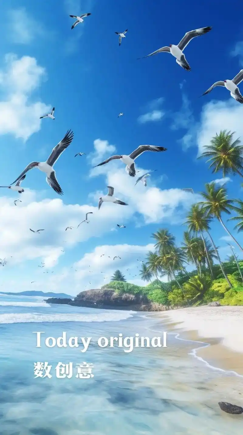 今日ai原创绘画作品|海阔天空9898.海阔天高,天高任鸟飞 - 抖音