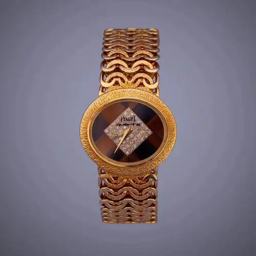 piaget伯爵18k金镶钻石石英女表虎眼石钻