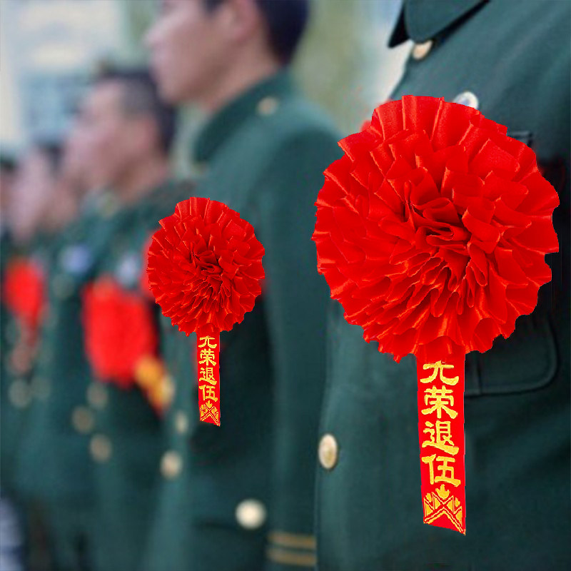 光荣大红花光荣花表彰退伍当兵征兵新兵入伍退休胸花