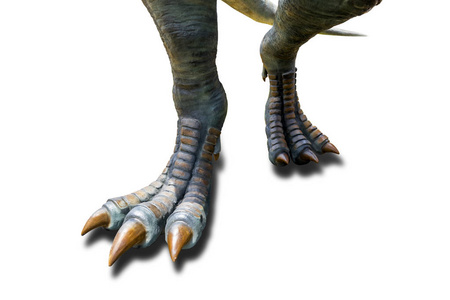 霸王龙,白色背景下霸王龙的恐龙脚行走.照片