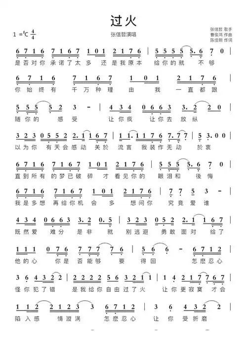 过火歌曲简谱歌词词:陈佳明/向雪怀曲:曹俊鸿是否对你承诺了太多还是