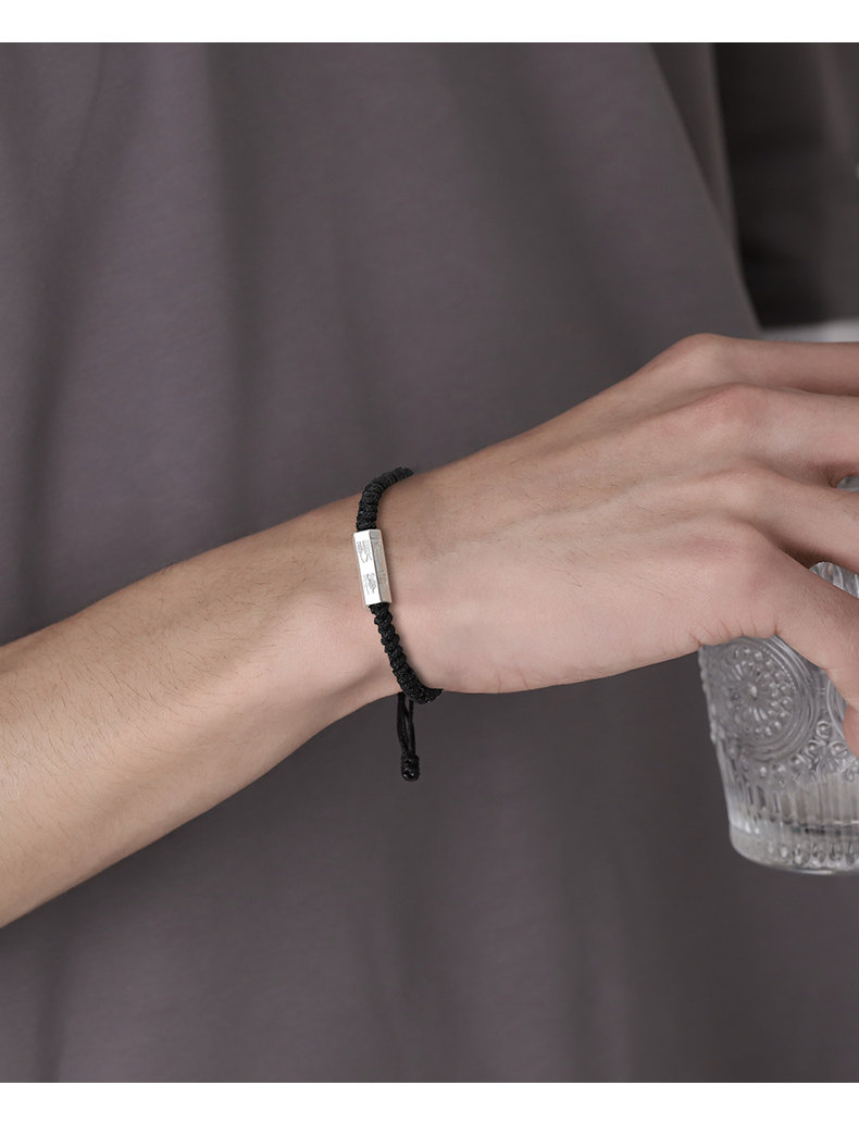 男士手链简单大方 编织绳转运珠手纯银链男单身简约 韩版潮男个性