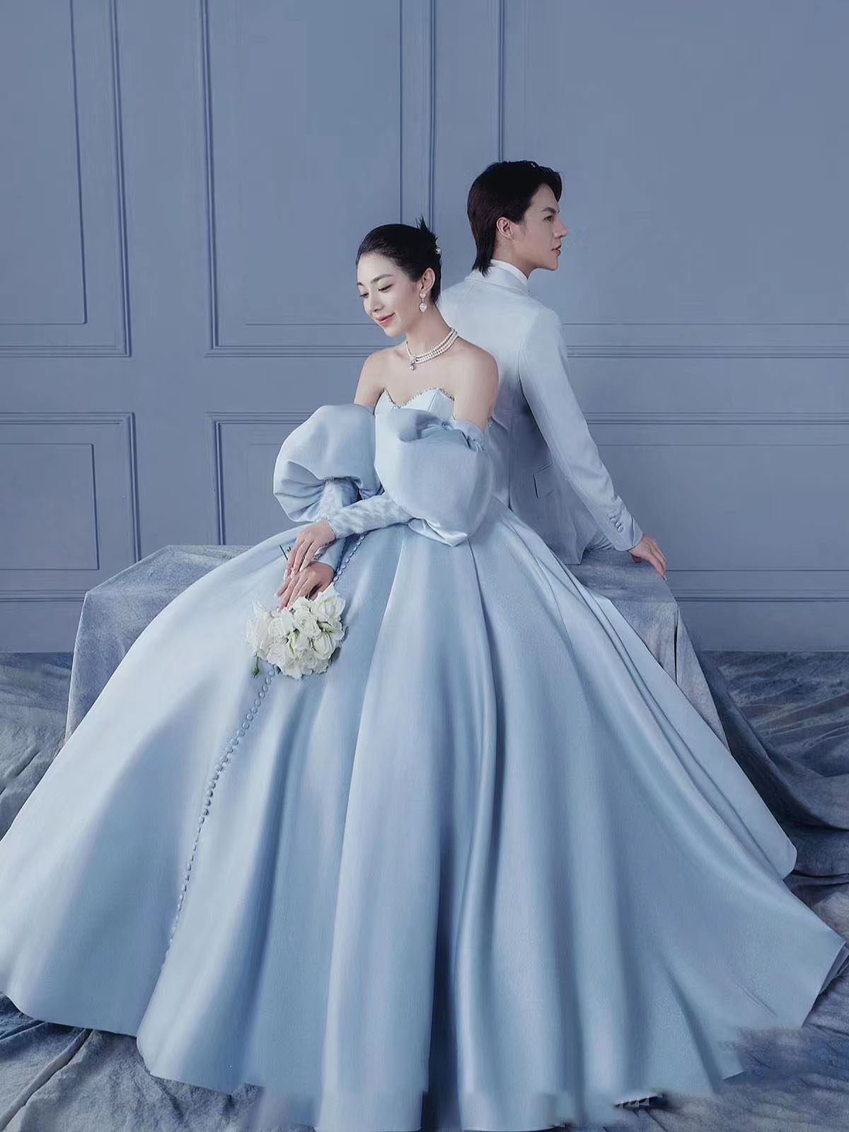 00折后价¥188影楼主题服装情侣长裙婚礼无袖纯色韩版吊带礼服黑色
