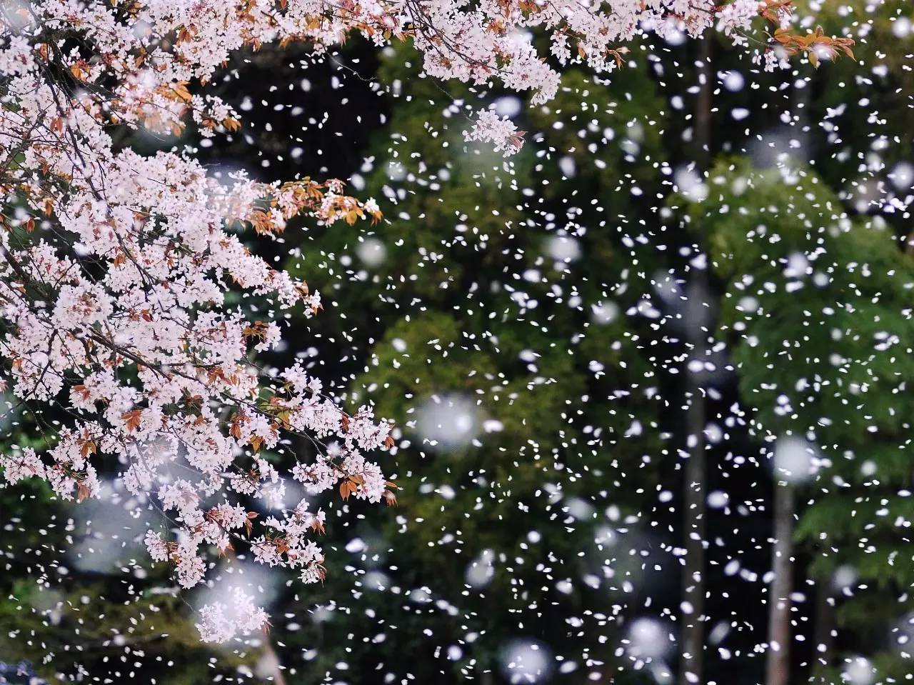 桜吹雪(さくらふぶき)樱花纷纷飘落,如下雪一般的景象.