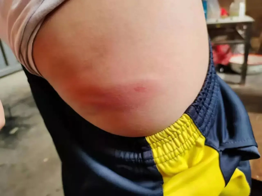 小女孩被打后,大腿,屁股,手臂等处都留下大片大片的紫红斑和青淤斑,惨