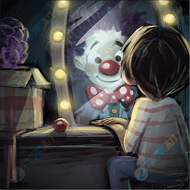 卡通可爱照镜子女孩高清图片下载