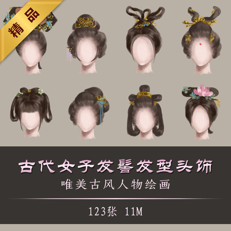古代女子发髻发型头饰发式 手绘古风人物临摹资料参考素材