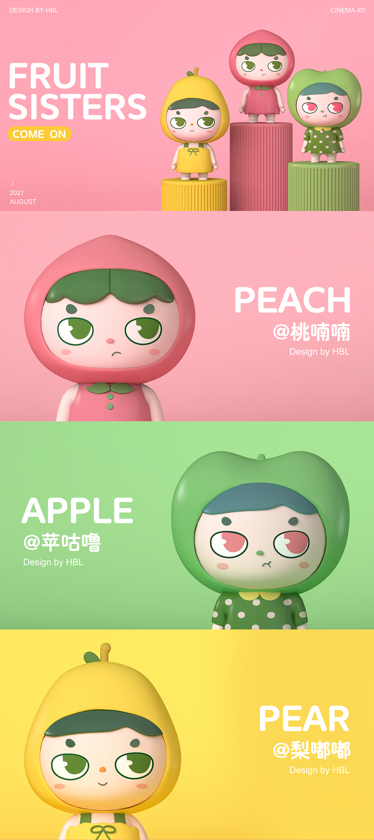 ip设计水果姐妹花c4d人物建模