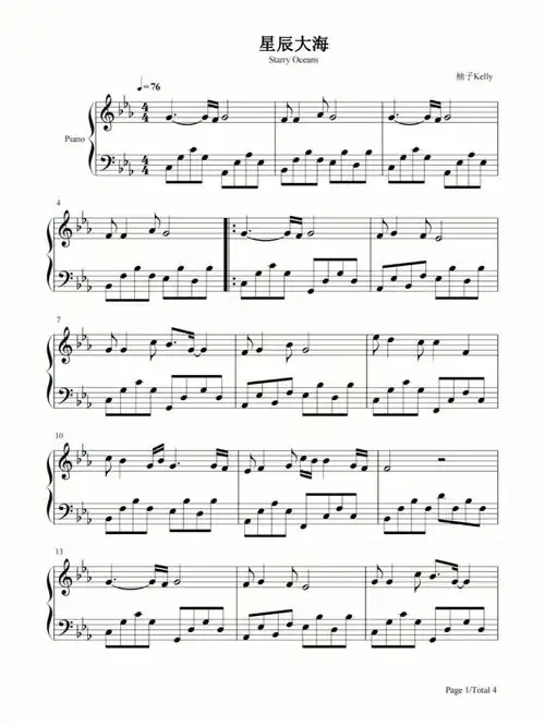 钢琴谱星辰大海