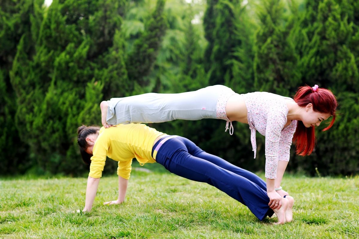 双人瑜伽,姿势优雅,造型别致,心与心的契合,情与美的展现!
