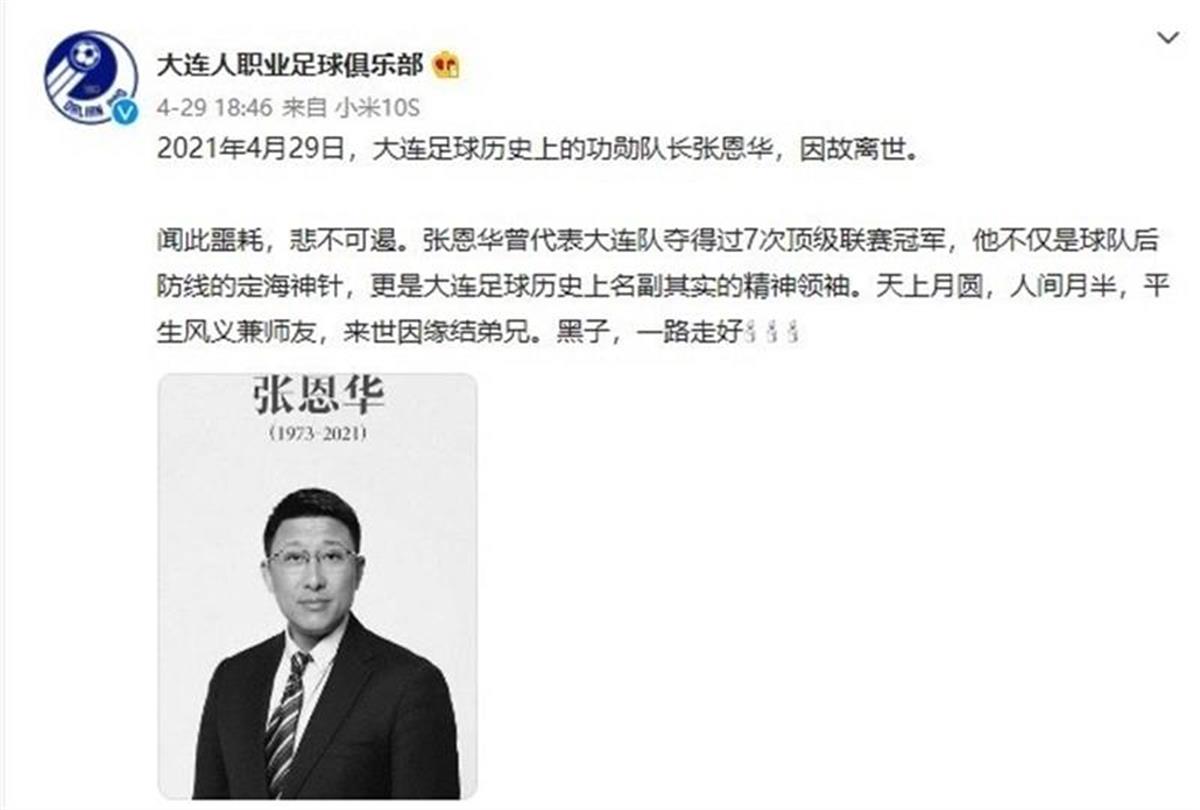 太突然前国足队长张恩华去世年仅48岁前一天刚过完生日