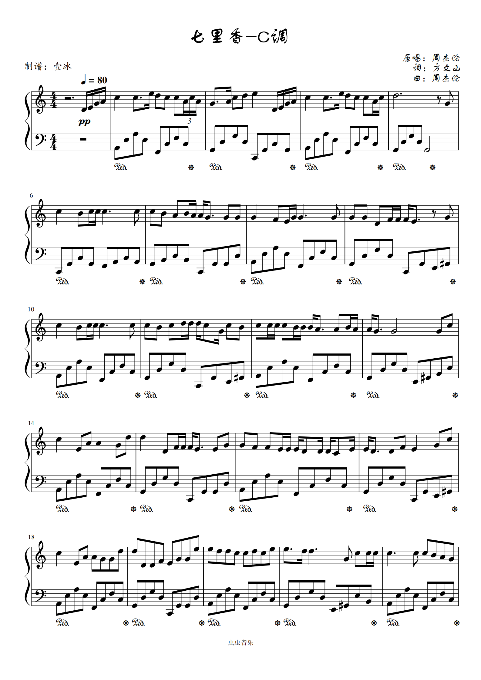 七里香//周杰伦-c调简单易上手钢琴谱-虫虫钢琴