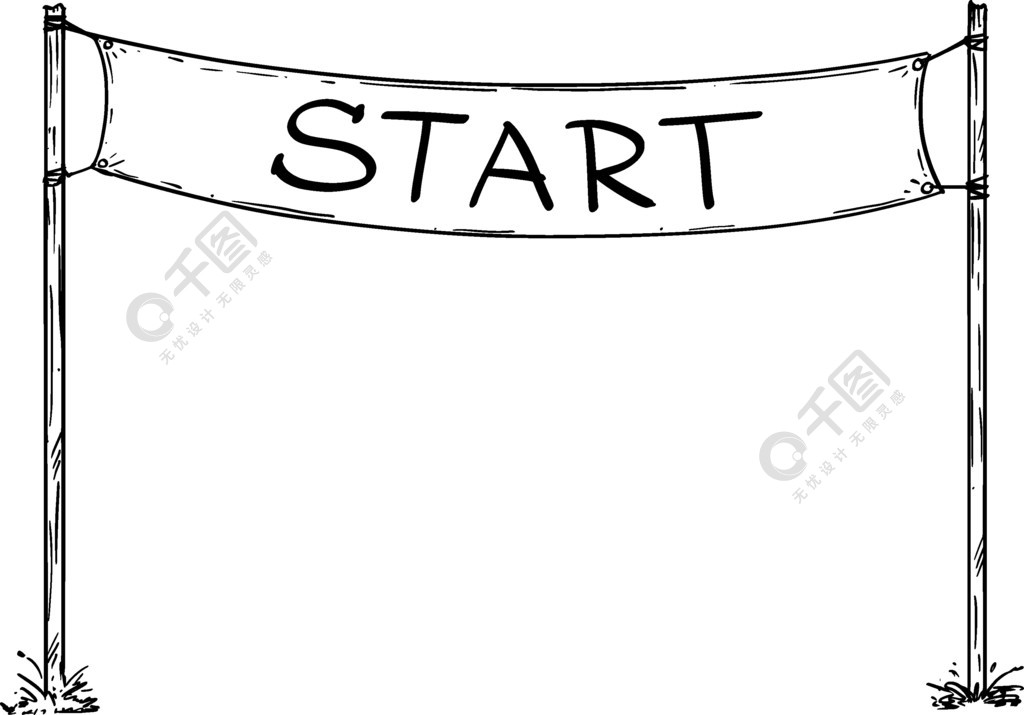 比赛起跑线标志或电路起跑线横幅的手绘矢量商业或职业概念矢量手绘