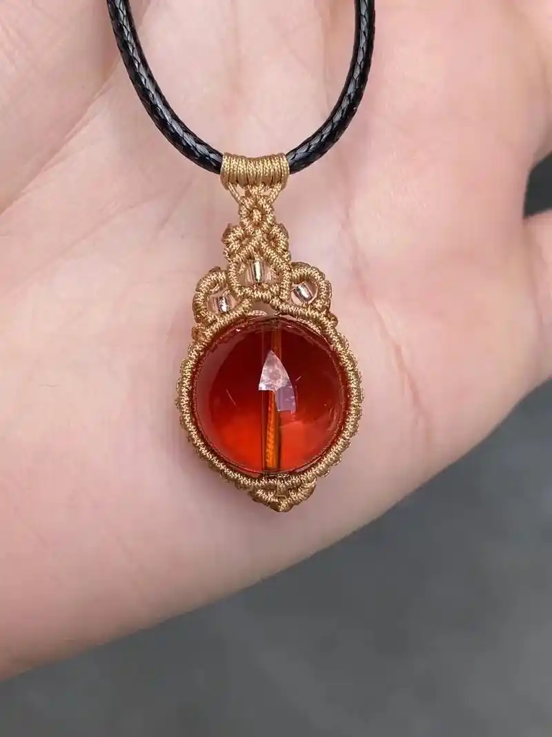 缅甸9898原矿琥珀(极品血珀)纯手工编织血珀单珠·锁骨坠 - 抖音